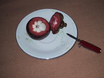 | I bought some mangosteens on the street. They're my absolute favorite fruit here. The taste is hard to describe, but oh-so-good! | | The view from my hotel. |