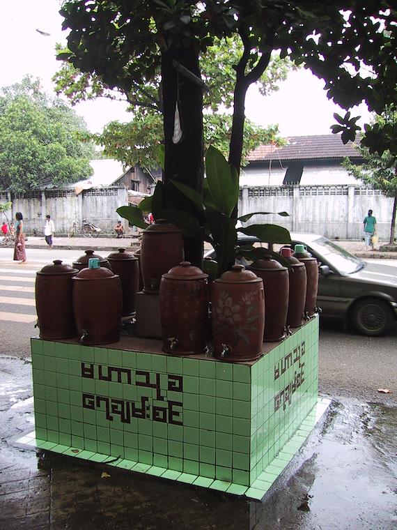 Water, available on the street. People set up these water stations as a public service, to gain merit (in the Buddhist sense).