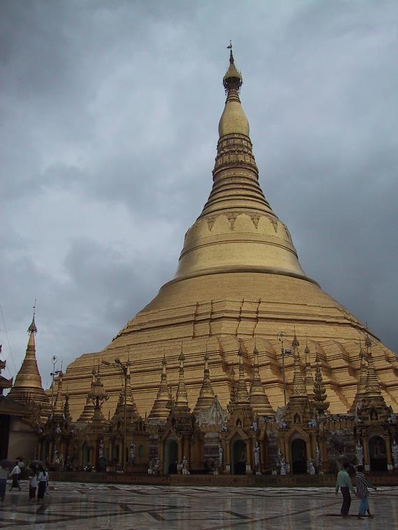 The actual stupa, centerpiece of Shwedagon. Too bad it wasn't sunny!