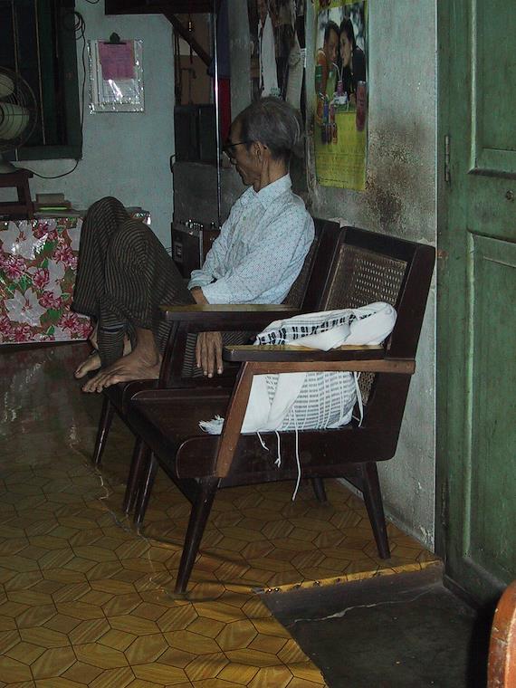 Tutu's friend's father, listening to the Voice of America on the radio in Burmese.