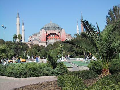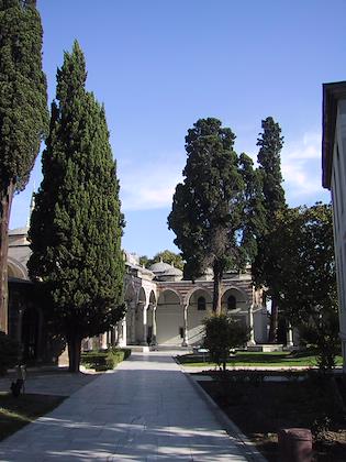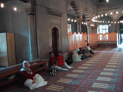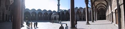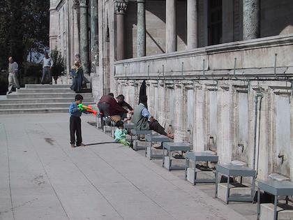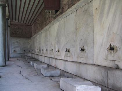 |  | |  | | Just a few minutes walk from the Aya Sofia is the Blue Mosque, which is still a functioning mosque. All mosques have a place where worshippers can wash themselves before prayer. | | The courtyard inside the Blue Mosque. |