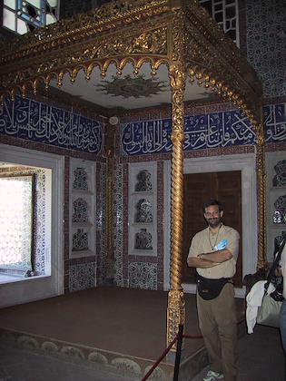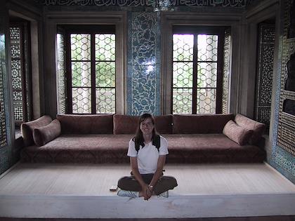| Eric, in the sultan's bedroom Notice that there's no pictures anywhere, only patterns. This is because in Islam, it is forbidden to make images of people or things. | | The sons of the sultan studied in this room. |