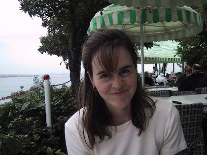 | We stopped off at the weapons museum at the palace. | | Lunch was at the museum cafeteria, overlooking the Bosphoros. Eric has just taken one too many photos of Sylvia. |