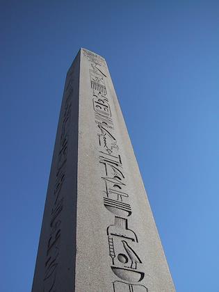 |  | |  | | Some people use the mosques as a place to rest. The shelves on the side are for storing shoes. | | This is at the Hippodrome, close to the Blue Mosque. This is the Obelisk of Theodosius, carved in Egypt around 1500 AD. It's amazing what good shape the carvings are in--I guess that's what happens when you carve something from granite. Evidently the obelisk was at one time three times as tall as it is now! |