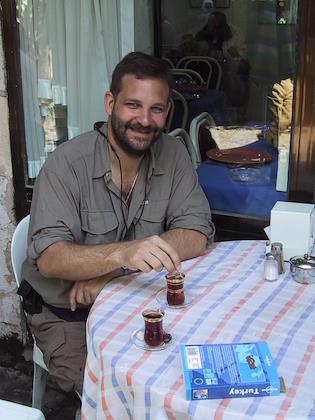|  | |  | | There were small hidden courtyards all around the market. | | We stopped to have Turkish tea, always served in small, tulip-shaped glasses, at a cafe within the market. We got charged about twice the normal price for the tea. Should have learned by this time to always ask the price before having anything. |
