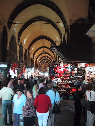 |  | |  | | More worshippers, performing their ritual ablutions. | | The Egyptian Bazaar in Istanbul. Just before we took this picture, Eric was accosted by somebody waving pictures of naked women right around his chest (where his money pouch was hanging inside his shirt) pretending to try to sell him something. It was pretty obviously a robbery attempt. |