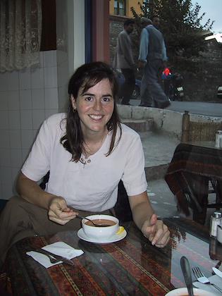 |  | |  | | Dinner at a restaurant close to our hotel. Chairs and tables were very low--can you tell? I'm having one of my favorites--lentil soup with mint. | | This is the waiter at our favorite restaurant-- a very friendly guy. | | | |
