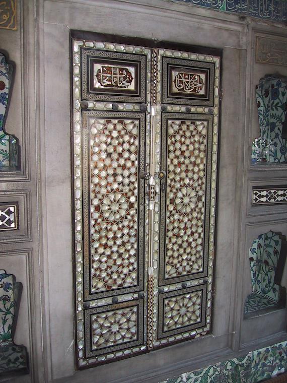Many cabinets looked like this, with mother-of-perl inlaid with tortoiseshell. According to our guide, often the sultans made these cabinets as a hobby.