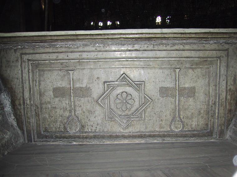 There were many crosses around, since the building was originally a church. All the crosses were obscured in some way, though.