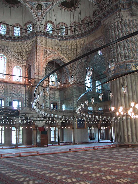 The interior of the Blue Mosque. We had to take our shoes off before entering.