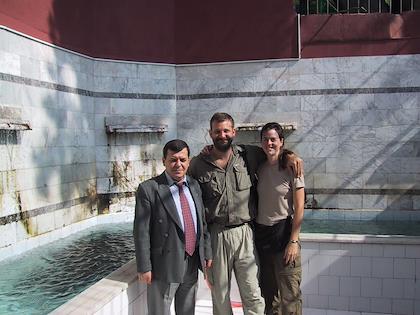 | We took the ferry from Istanbul to Bursa. On the ferry we met Zeki Bayramoglu, a salesman for a clothing dye company. He goes to Bursa every week to sell dye to the towel factories out there. Zeki is a very generous and charismatic man. He'd been to America for about a year, and really loved it there. He spent the whole day driving us around, showing us the area, and bought us lunch and dinner. | | This is one of Zeki's favorite fish restaurants, the Pinar Alabalik, on the road to Bursa. The trough behind is is where the fish are live right before they're eaten. |