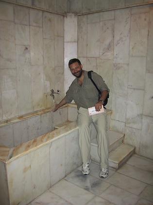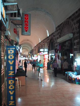 | The next morning we took a bus to Izmir. The bus stations are very modern, like airports. The 5 hour bus ride cost $7.50 per person. | | This is at the Otel Antik Han, where we ended up staying. The hotel is right in the middle of the bazaar. They were very friendly. The posted price for a double room was $70, but they asked for $29 and we settled on $26. You bargain on almost everything in Turkey. |