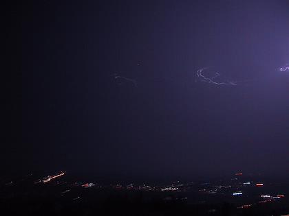 | Eric met Omur Onan right outiside the Yesil Camii. He spoke English very well--he had lived in New York many years, getting damaged carpets to repair from museums and carpet stores, sending them to Turkey for the actual repair, and then bringing them back. He showed us some of the repair techniques used. | | That evening there was a heavy thunderstorm. Eric spent about half an hour trying to get a picture of the lightening. This is the best one. Needless to say, you have to be fast! |