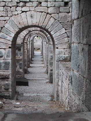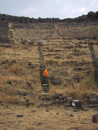 | | This is the theater at Pergamum. I was very impressed--it was our first theater. Normally they're wider and not as high, but this one was built up. |