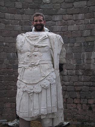 | Sylvia, posing on a column. What a Goddess! | | Eric, posing on another column. |