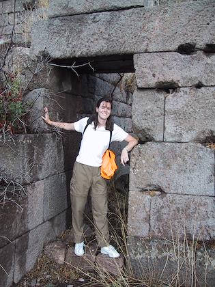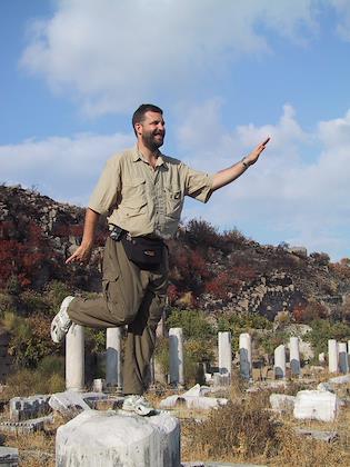 | Eric pretends to be a Roman gladiator. Ericus Maximus! | | Sylvia among the columns. This area is all reconstructed. |