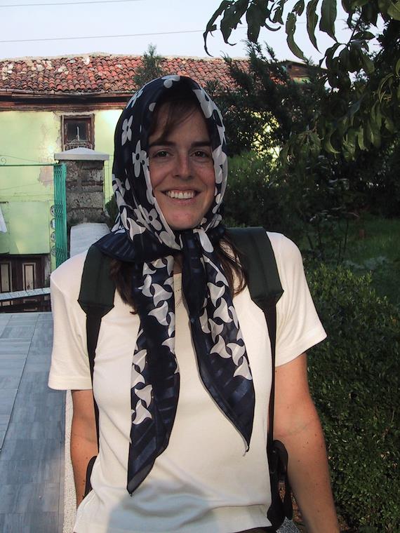 We bought a scarf so that I could go into mosques. This is me in front of the Yesil Camii. Cute!