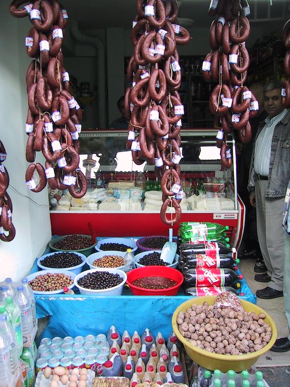 Next door was a sausage and olive shop. There's a tremendous variety of olives here!
