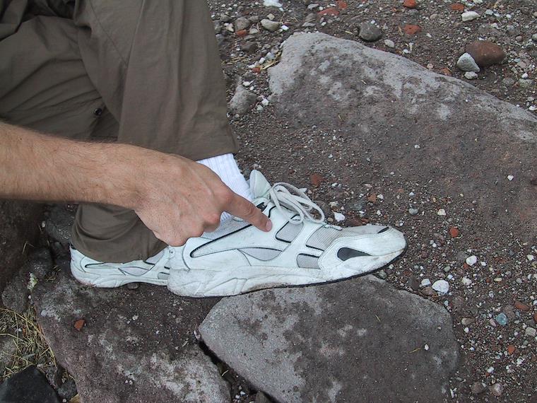 Eric was hit by lightening! It wasn't a full on strike, but he was charged with electricity, and felt it discharge from his body through this foot. Needless to say, we went downhill very quickly.