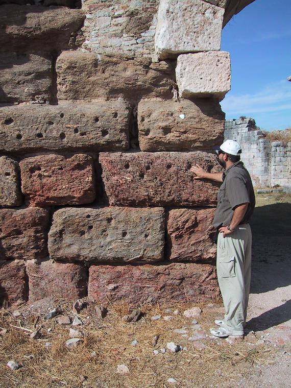 A close-up of the doorway to the Baths of Faustina. Eric and I theorized that the holes in the blocks were used to fasten marble slabs.