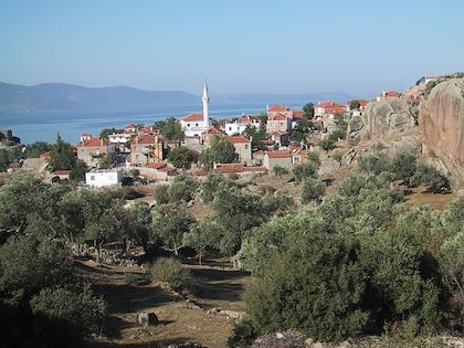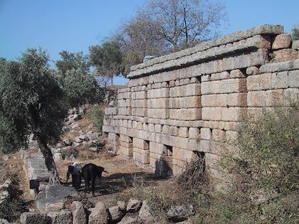 | A great view of Kapikiri and Bafa Lake. | | Part of the city wall around the ancient city of Latmos. I wonder why they used this particular pattern, with the narrow stones and then the broad ones. |