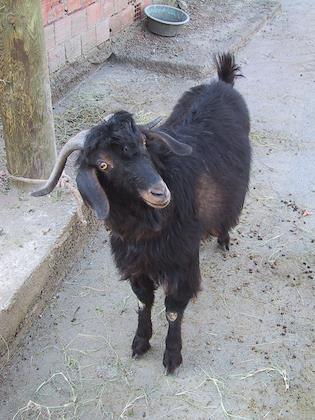 | We took it easy in the morning. There were some books in the pension about the ruins in this area, and I took notes on how to get to one of them, the Seven Brothers Byzantine Monastery (Yediler). We started in the village of Golyake, 4 kilometers from Kapikiri. This goat was tied up in the village. | | We had a hard time finding the path up at first, because there was nobody to ask. Maybe they were all working in the fields. But we found one very friendly man who managed to convey to us "follow the arrows". We found the starting arrow, and the rest was very easy. This ended up being one of our favorite days in Turkey, because it was a wonderful walk with superb views, a great ruin, and we were the only ones there. |