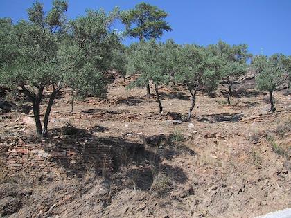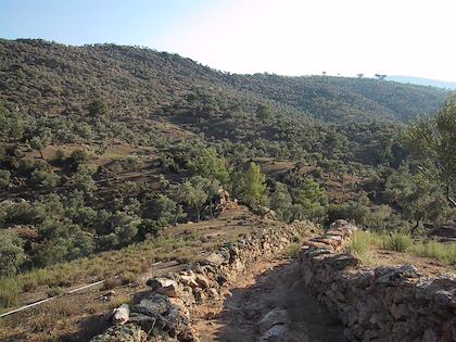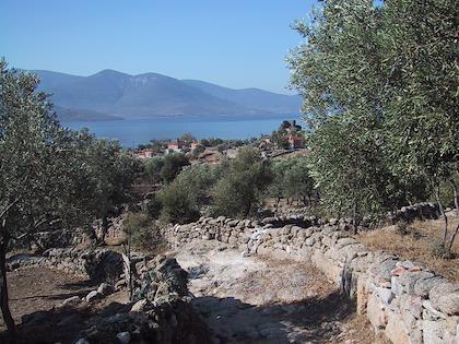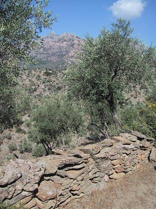 | Great views, stone walls everywhere, olive trees. Mt. Besparmak was visible almost everywhere. | | Sometimes the trail went between two stone walls. |
