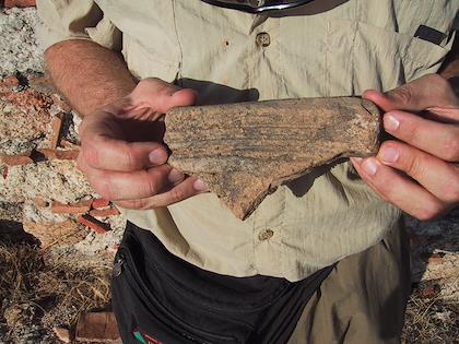 | Eric is in the throes of a moral dilemma here. Should he or should he not take a genuine Byzantine brick from the ruins here? | | It's such a pretty brick, too. He eventually decided not to bring it. I think the words that did it were "Midnight Express". |