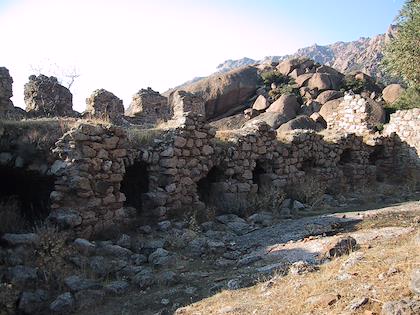 | Lunch on the rocks. Lunch usually consisted of a loaf of bread, some cucumbers, tomatoes, cheese, often some apples, and pistachios or some kind of nuts. | | The monks lived in these small cells. |