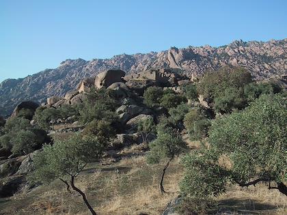 | A view of the monastery from below, with olive trees. | | Great views on the return trip. |