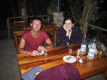 | Cows and donkeys are kept right in the middle of ancient ruins. | | We had dinner with Christoph Loehr, the German archeologist who's on a 2 month contract here, cataloging the ruins right around town. It was great to talk to him and ask him all our archeological questions--I wish I'd written them all down! |
