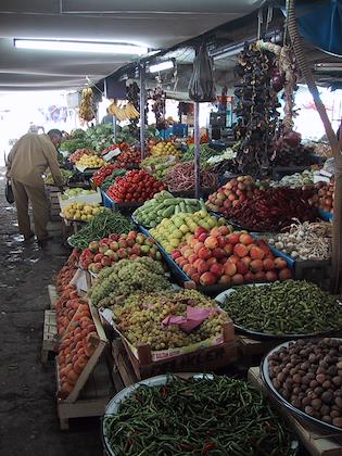 | We went grocery shopping in Milas. Bread is always sold like this, in glass cases outside the stores. | | At the market we bought our usual, tomatoes, cucumbers, and apples. I wish I could pay Turkish prices for fruits and vegetables in the US! This woman is selling persimmons, which I haven't seen in Turkey before. |