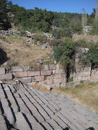 | The city walls went high up into the hills. It would have been a really fun hike to go up there and try to follow the walls. | | If you look closely, or look at the higher resolution picture (click on the one below) you can see the Temple of Athena and Kapikiri below. |