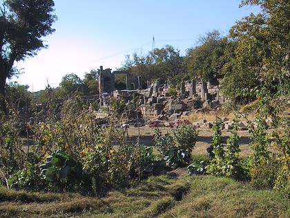| This is part of the Temple of Athena, overlooking the lake. | | Over the years, people have torn up many of the old buildings to use in fences and buildings. |