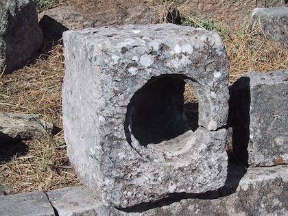 | The caretaker/ticket seller had a nice garden right next to the ruins. | | Our best guess at what this was is something like a pipe fitting, where a sewage fixture takes a 90 degree angle. |