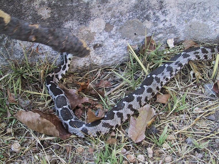 Eric thought this snake was dead, because it didn't move when he threw a small twig at it. Turns out it was just injured, because after he came closer, it hissed at him. The caretaker smashed it with a stick, saying that it was poisonous.