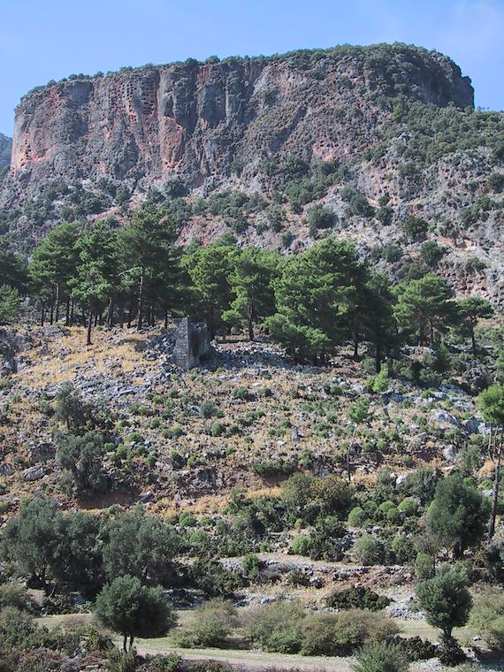 Pinara was one of my favorite sites in Turkey. Unfortunately I was feeling a little under the weather with a cold, so we didn't do a lot of hiking. It was beautiful, though. If you click on this picture, you can see the rock tombs carved into the mountain, as well as some ruins in the foreground, and the ubiquitous olive trees.