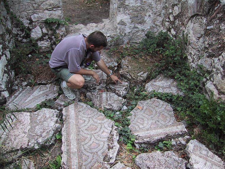 Eric examining the mosaics in one of the ruined houses.