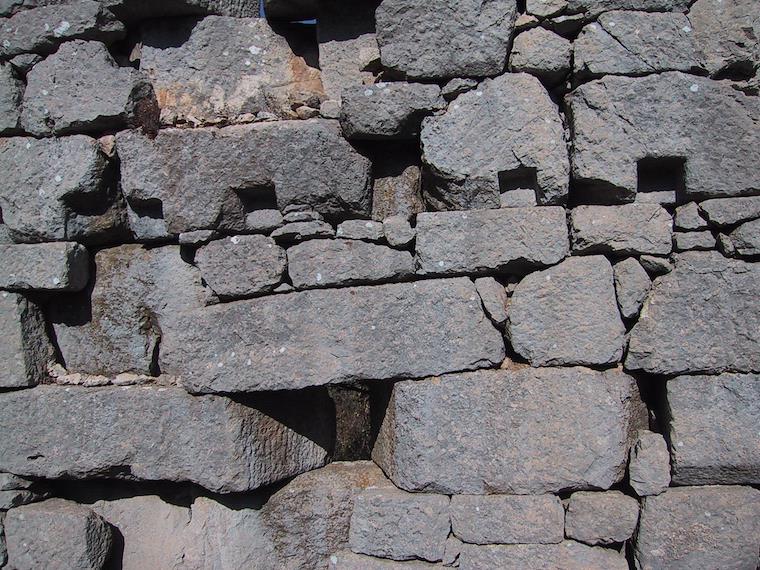 This is what a wall looked like in one of the ruined houses--squares carved into the rocks, presumably for wooden floor supports, and narrowed windows--for defensive purposes, perhaps?
