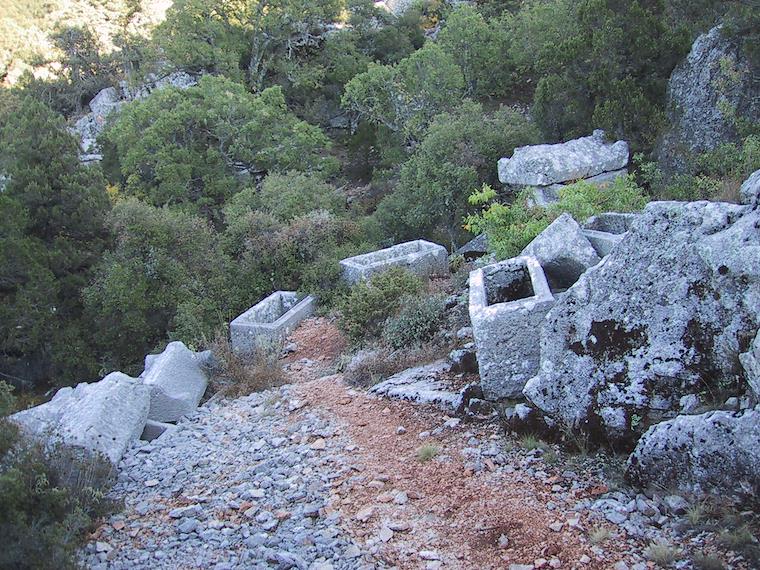 More stone sarcopgai, laying around, either broken open by grave robbers or earthquakes.