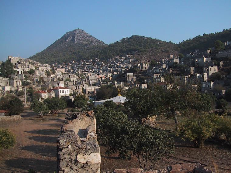 Later on in the day we went to the abandoned village of Kayakoy. Apparently in 1922, there was an exchange of population between Greece and Turkey--the ethnic Turks in Greece were to go to Turkey, and the ethnic Greeks in Turkey were to go to Greece. This village used to be a Greek village, but after the Greeks left, it was never resettled. It's an eerie place to walk around. The buildings have all been stripped of anything useful, and many of them look like they've been destroyed on purpose. None of them have roofs.