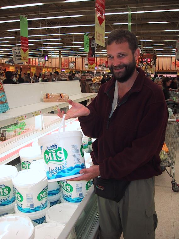 We stopped in a massive grocery store to pick up some things needed for dinner. Eric found some really HUGE containers of yogurt here.