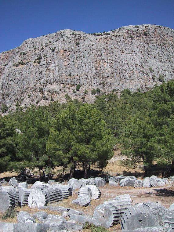 Mt Mykale, with pieces of crumbled columns in the middle. We started a game here--to get from place to place, you had to step on pieces of ruins. We called the broken up fluted columns "gears". They look a lot like gears, don't they?