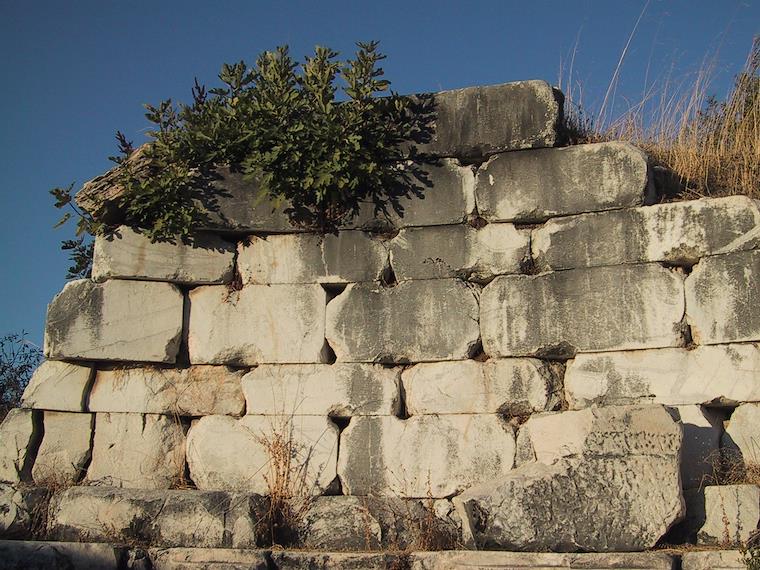 This is in the ancient city of Stratonikea. You can see here the holes where people dug out the metal connecting the blocks together.