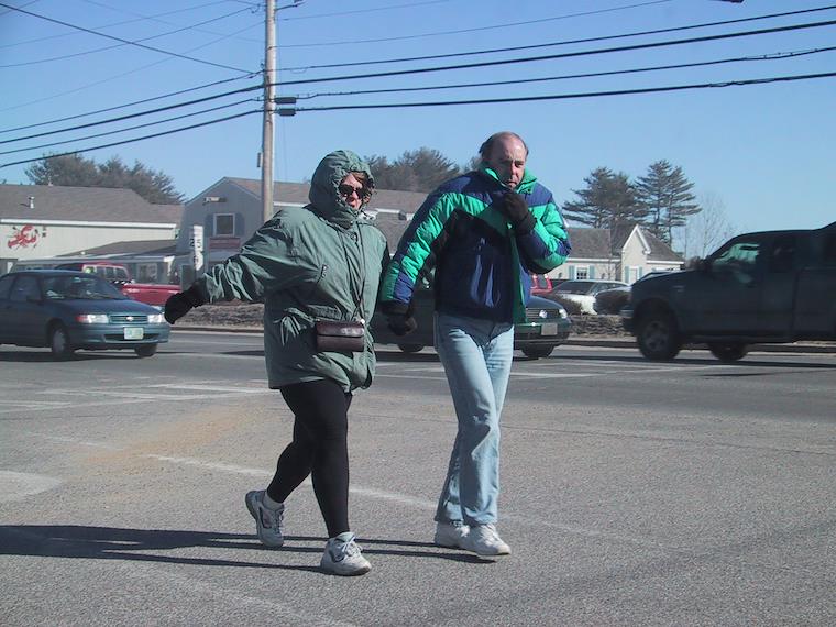 We took a drive up along the Maine coast, and stopped a couple times along the way. This couple crossing the road provide a graphic illustration of how cold it was.