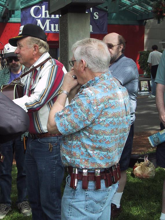 This bluegrass musician has quite a collection of harmonicas! Lots of impromptu bluegrass jam sessions happened at the festival.