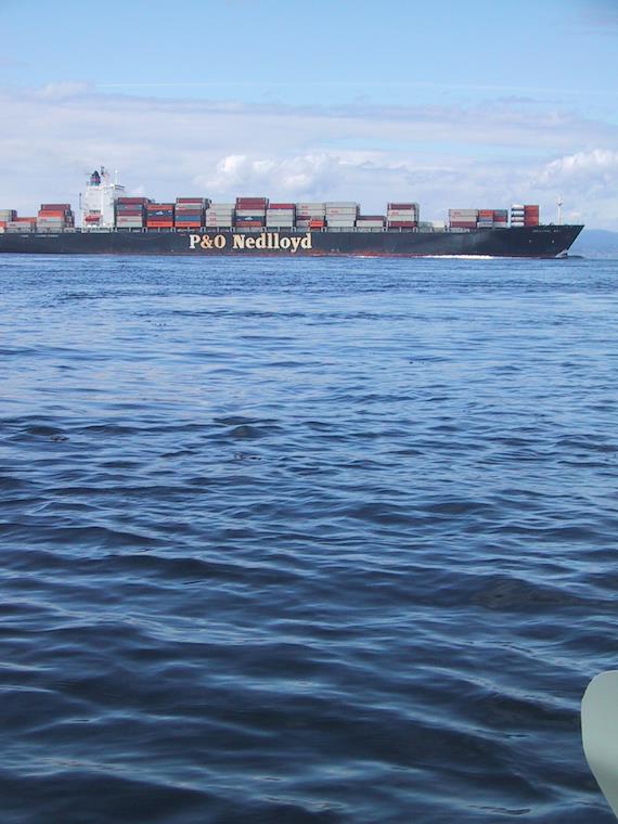 Here we're passing along a shipping channel as a huge container ship passes us.