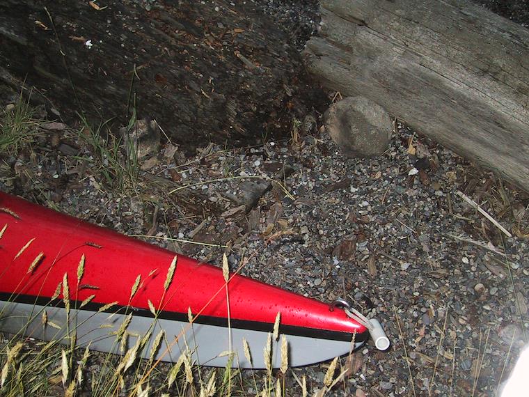 This is a rock that was dislodged from the embankment when moving the picnic table around. Apparently it missed smashing our kayak by mere inches!