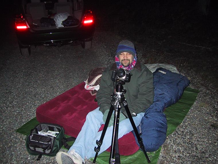 Eric gets ready for a long night of picture taking. His friend, Joe Beda, lent him a non-digital camera which is capable of much longer, controlled exposure, than our little digital camera.
