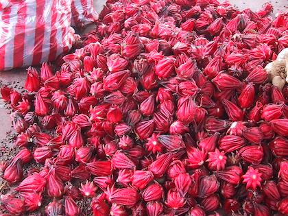 | In Panama City, we walked down Avenida Central, the main shopping area. Here they're selling medicinal herbs. The big ones are aloe. | | This is a strange fruit that I've never seen before, for sale on the streets of Panama. I asked the name of it, but didn't write it down. |